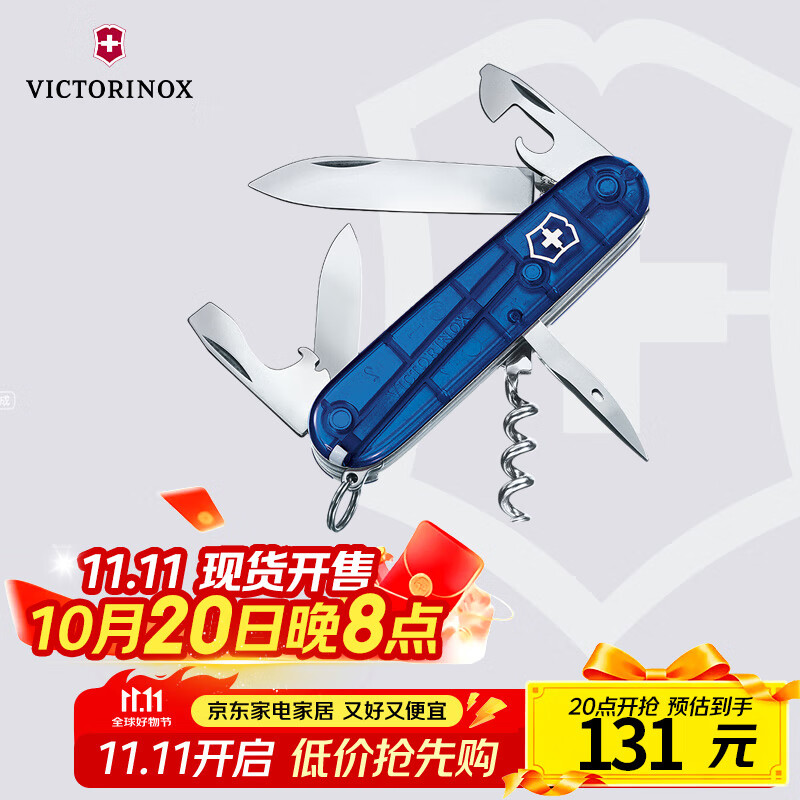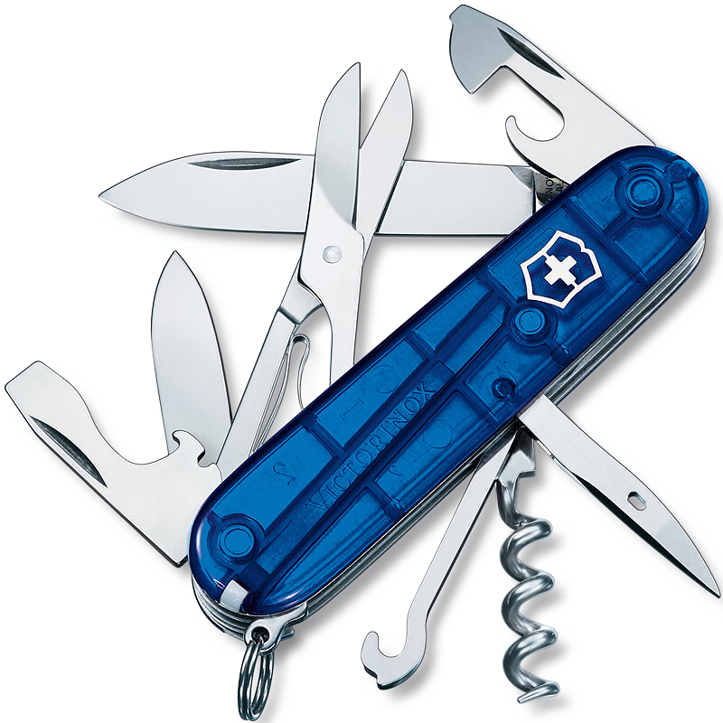 维氏瑞士军刀攀登者91mm户外刀具折叠刀防身小刀1.3703.T2透明蓝