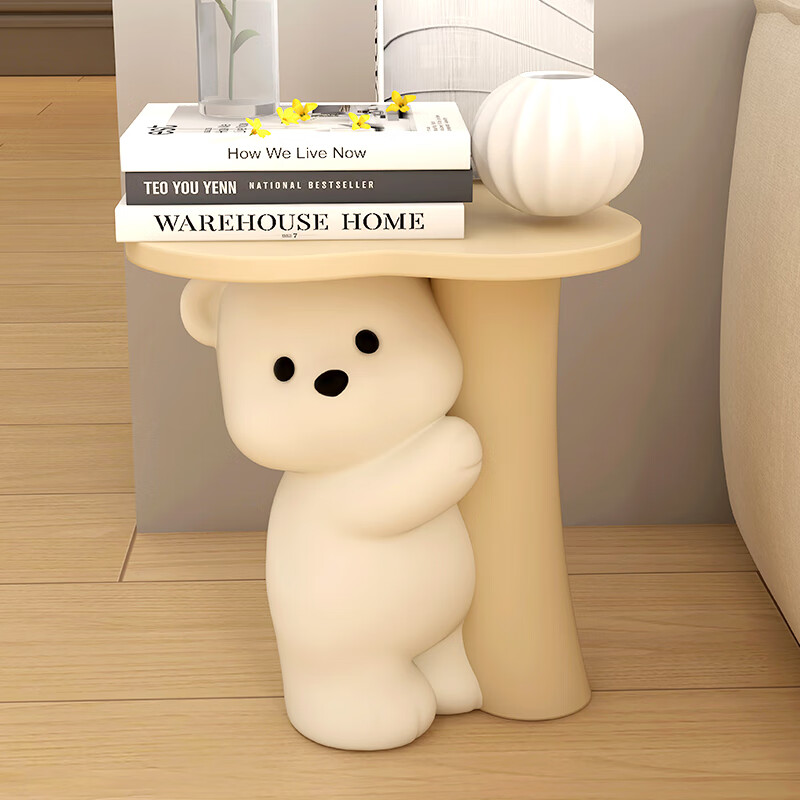 辰鱼创意客厅暴力熊落地摆件沙发边几托盘床头电视柜装饰乔迁新居礼品 四叶草小熊茶几-卡其色