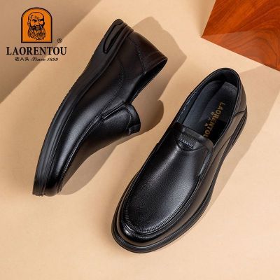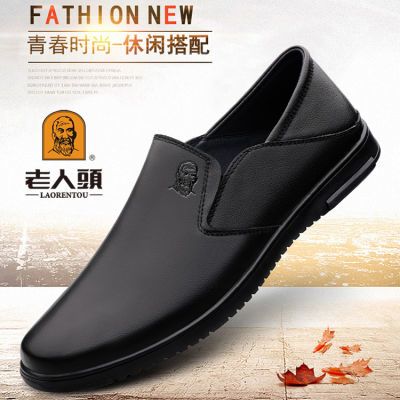 百亿补贴:老人头男鞋一脚蹬皮鞋男真皮头层牛皮男士防滑软底高档休闲爸爸鞋