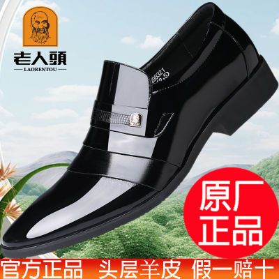 百亿补贴:老人头男鞋2025新款真皮男士商务正装皮鞋漆皮尖头英伦风新郎婚鞋