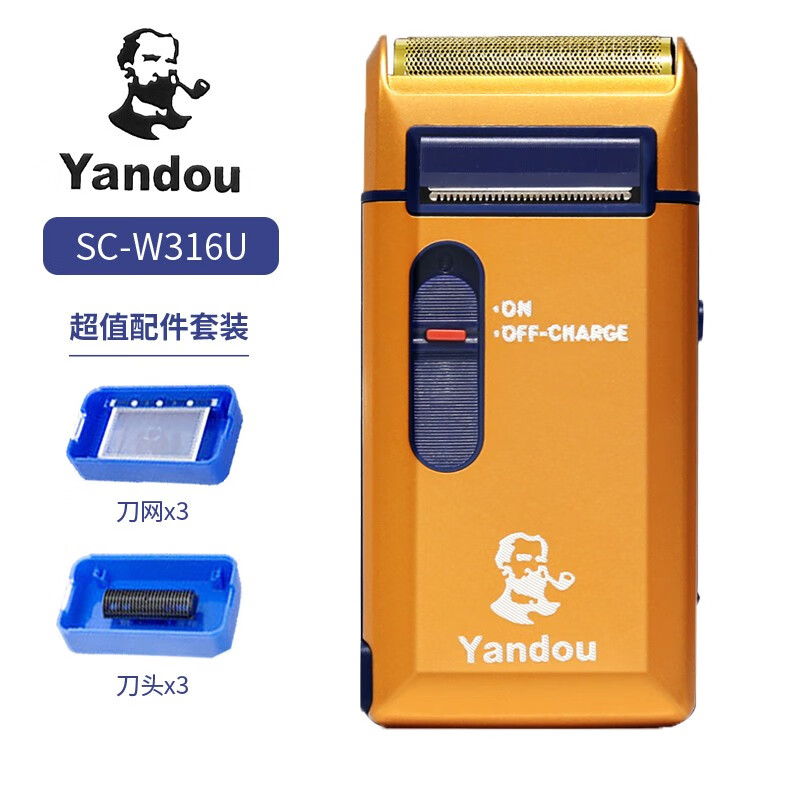烟斗SC-316U电动剃须刀充电式男士电须刨老人头刮胡刀便携往复式剃须刀 标配(加收纳盒)+3个刀头+3个刀网