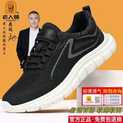 老人头男鞋秋季透气网面鞋健步休闲鞋软底运动鞋男防滑老北京布鞋