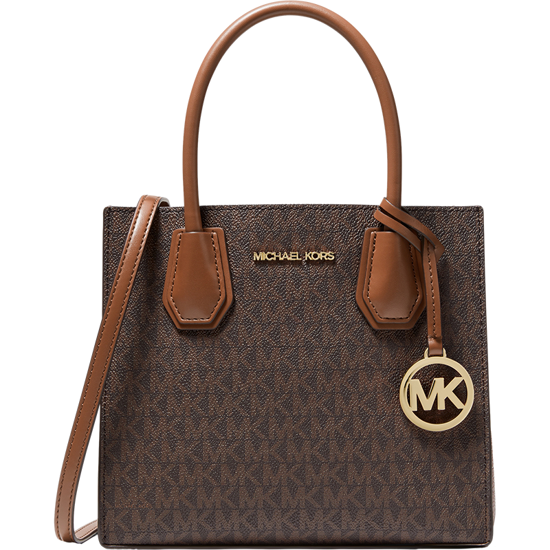 MICHAEL KORS礼物送女友轻奢MK女包MERCER老花手提斜挎风琴包中号 深棕/橡果棕