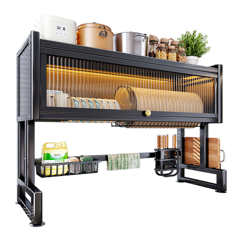 帅仕厨房置物架台面水槽沥水架碗碟收纳架子刀架水池储物架用具大全 【高款-黑色85长】沥水6件套