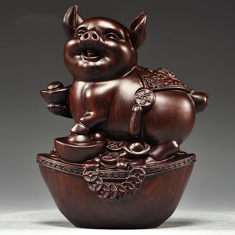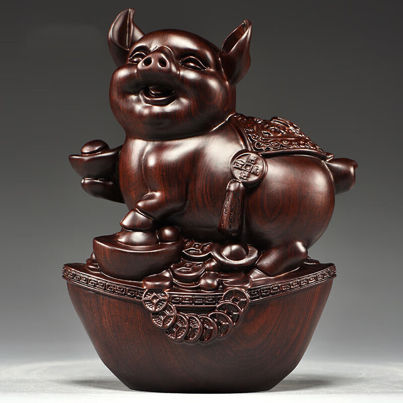 浮歌福猪摆件十二生肖家居创意工艺礼品 黑檀色元宝猪 高8cm
