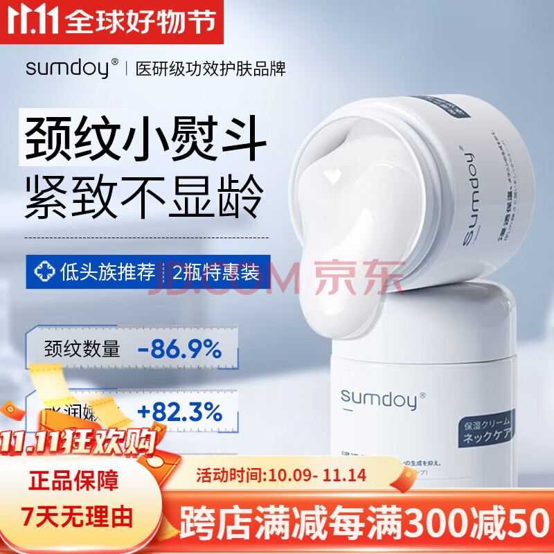 【全球购】 SUMDOY 日本进口去颈纹颈霜抗皱提拉紧致颈纹去除颈部护理美颈霜 【深度去纹】颈霜50g*2
