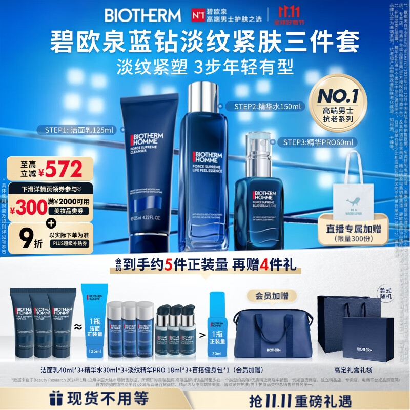 碧欧泉男士蓝钻紧致三件套(洗面奶+爽肤露+精华)礼盒 生日礼物男送老公