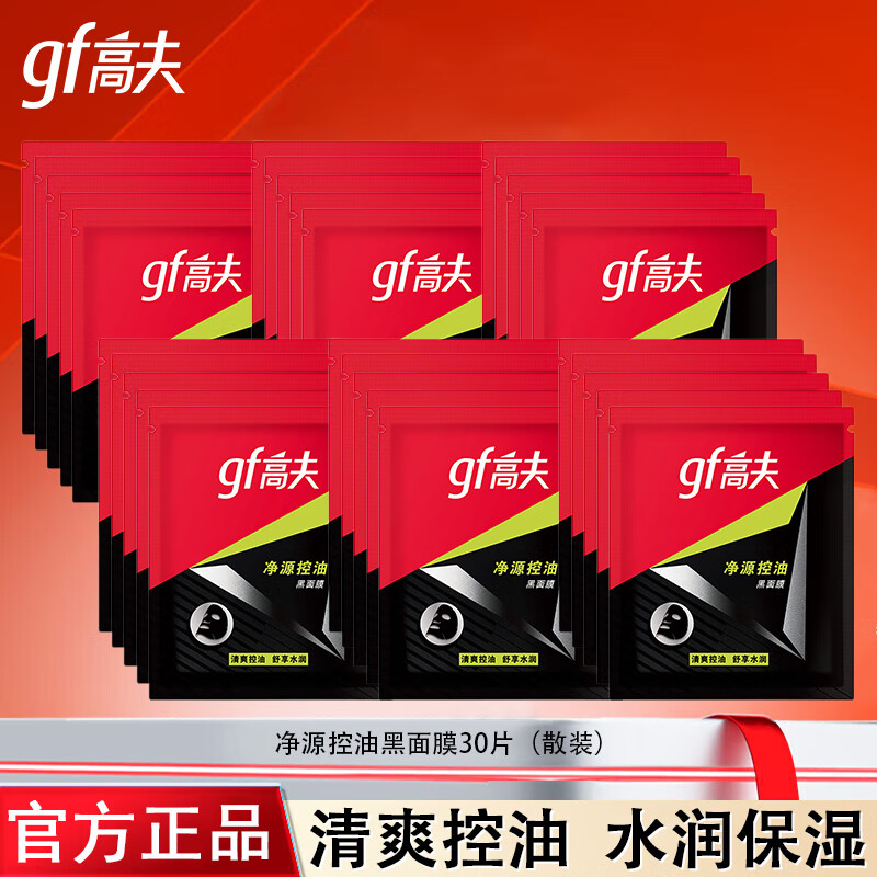 高夫(gf)男士面膜 净源控油黑面膜 清爽控油水润保湿护肤品官方正品 黑面膜30片(散装)