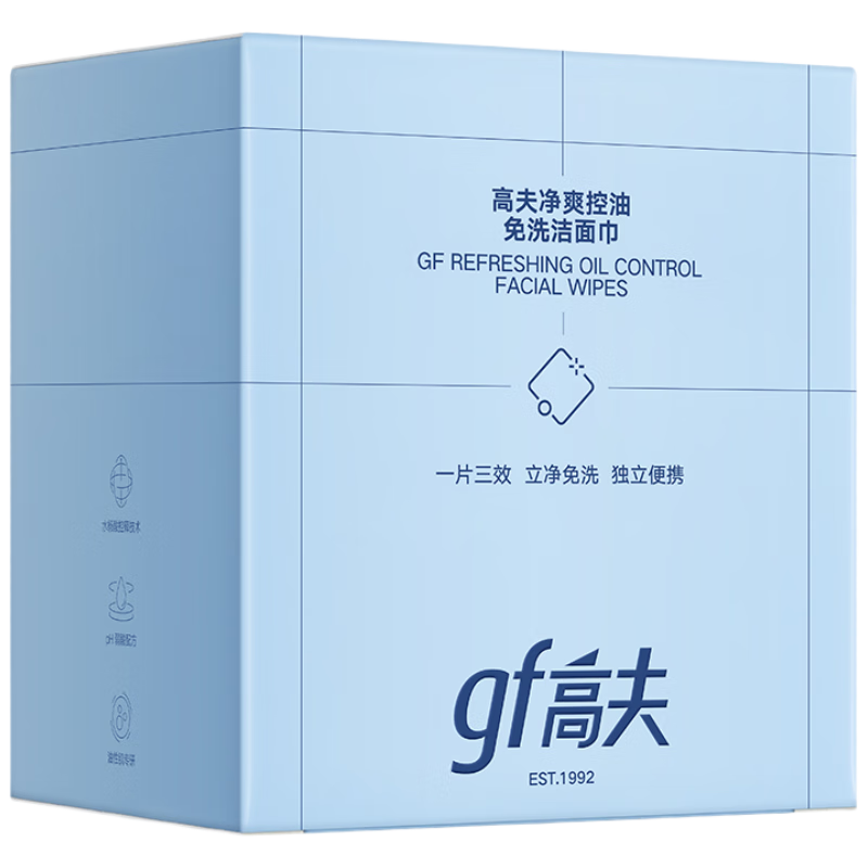 高夫GF【付航变帅同款】gf高夫控油洁面巾净爽控油免洗洁面巾5.5g*30