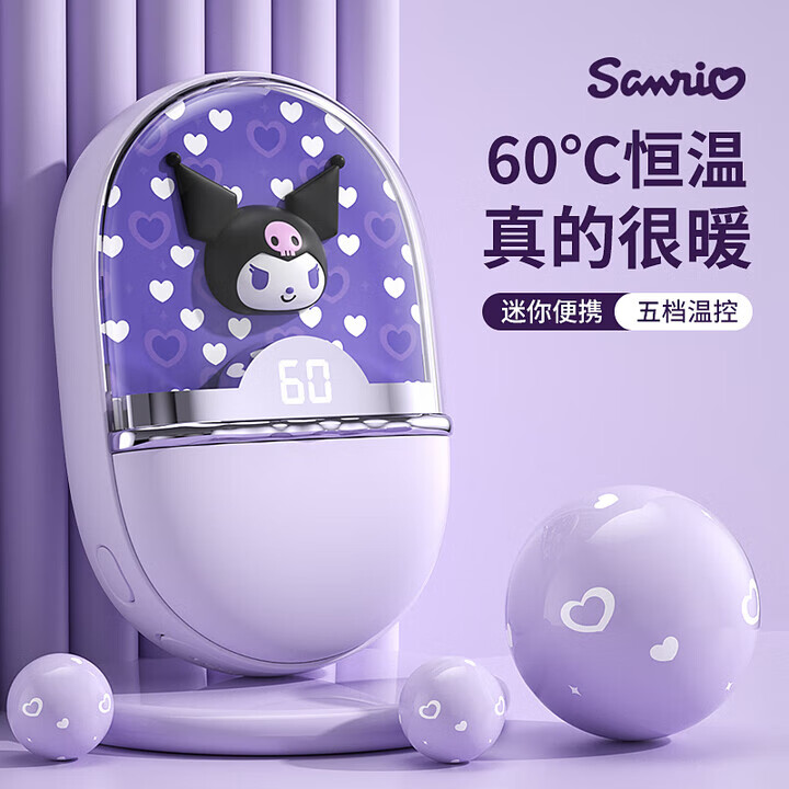 小米锅巴三丽鸥正版授权暖手宝迷你可爱暖宝宝女生生日礼物充电宝两用神器 [紫色-库洛米]五档调温+数显 60℃恒温+ 小巧便携