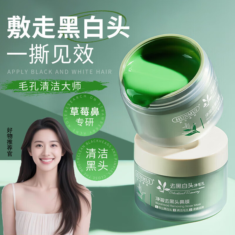 HUNMUI净澈去黑头鼻膜清洁毛孔粉刺t区护理温和不刺激收缩鼻贴 净澈去黑头鼻膜*1瓶* 100g