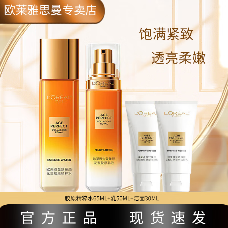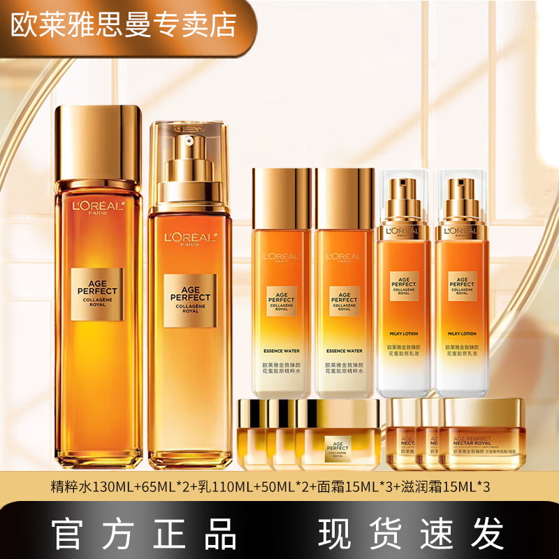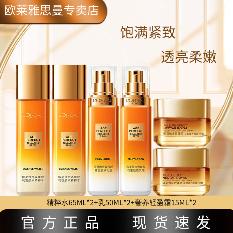 百亿补贴:欧莱雅 L'OREAL金致臻颜花蜜奢养水乳保湿护肤化妆品套装爽肤水胶原精粹水精华蜜 花蜜基础护肤6件套