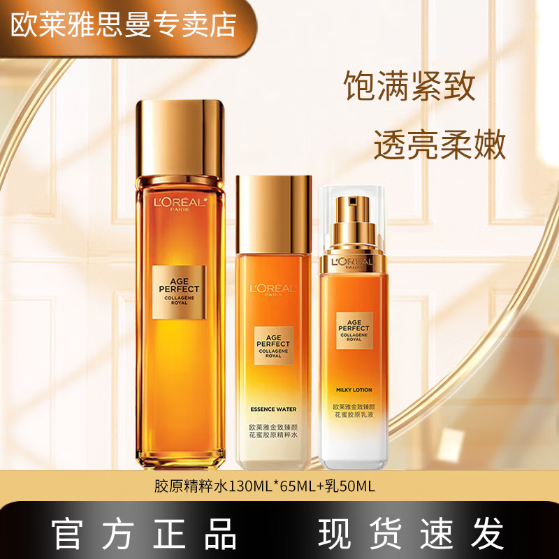 百亿补贴:欧莱雅 L'OREAL金致臻颜花蜜奢养水乳保湿护肤化妆品套装爽肤水胶原精粹水精华蜜 花蜜精粹水130ml+65ml+乳液50ml