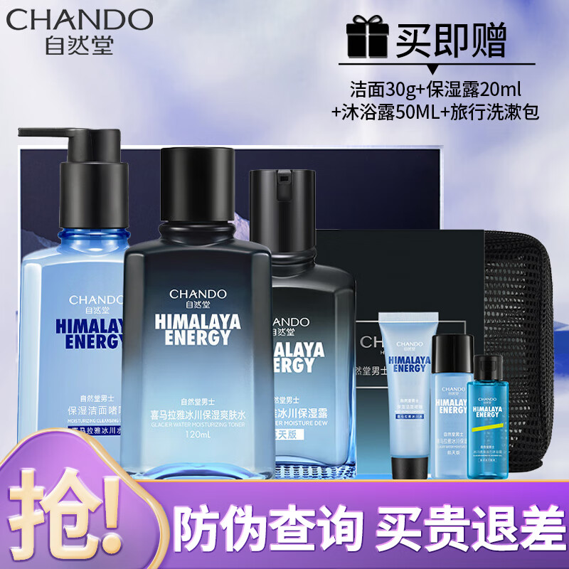 百亿补贴:自然堂(CHANDO)男士喜马拉雅冰川滋润保湿护肤品套装洗面奶保湿露520情人节礼物 洁面啫喱+爽肤水+保湿露