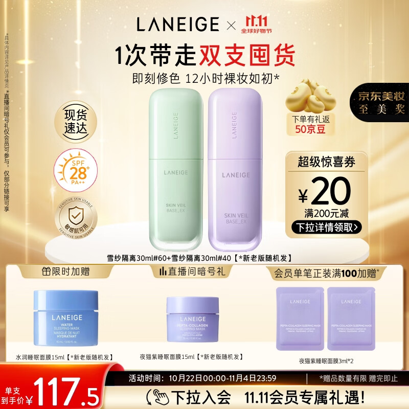 百亿补贴:兰芝旗舰店雪纱隔离妆前乳防晒打底矫色修颜提亮遮瑕清透贴肤正品