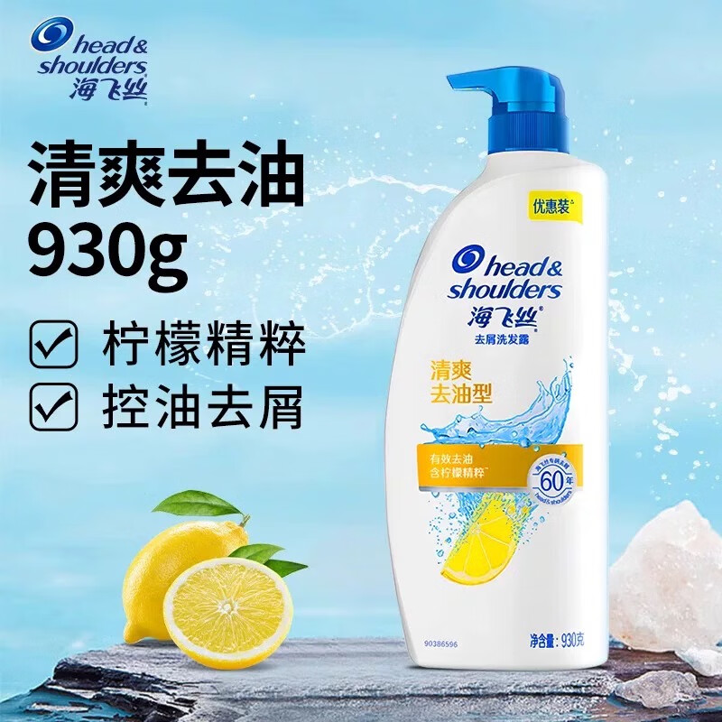 海飞丝清爽控油洗发水930g 持久去屑蓬松柠檬护发