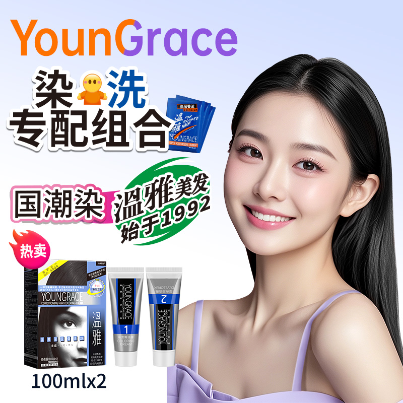 温雅薄荷黑巧黑染发剂自然黑官方正品自己在家染头发膏天然遮白发