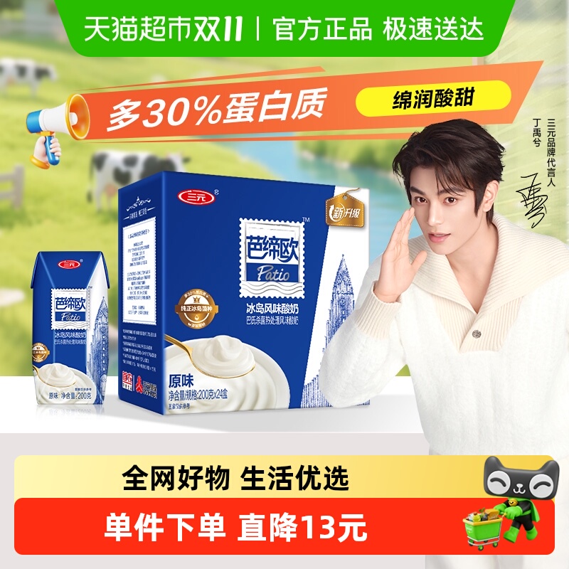 三元 芭缔欧 酸牛奶 3.0g蛋白质 200g 10盒