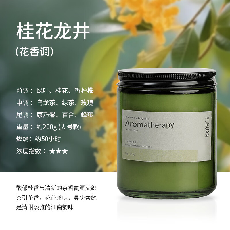 艾风格墨绿香薰蜡烛摆件植物精油大豆蜡持久香氛熏香伴手礼 大号黑盖墨绿瓶-桂花龙井【蜡重200g】
