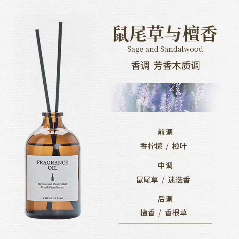 艾风格香薰精油套装无火香薰卫生间空气清新剂酒店用芬芳摆件 鼠尾草与檀香