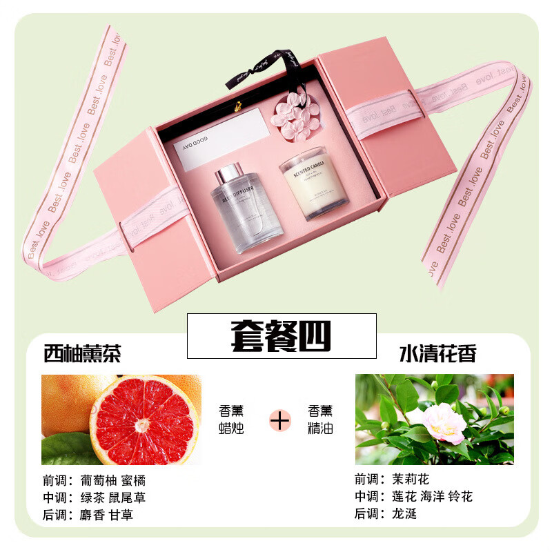 艾风格樱花香薰礼盒无火香氛精油摆件家用室内香薰蜡烛香熏套盒 【西柚薰茶+水清花香】 樱花雪月 赠手提袋