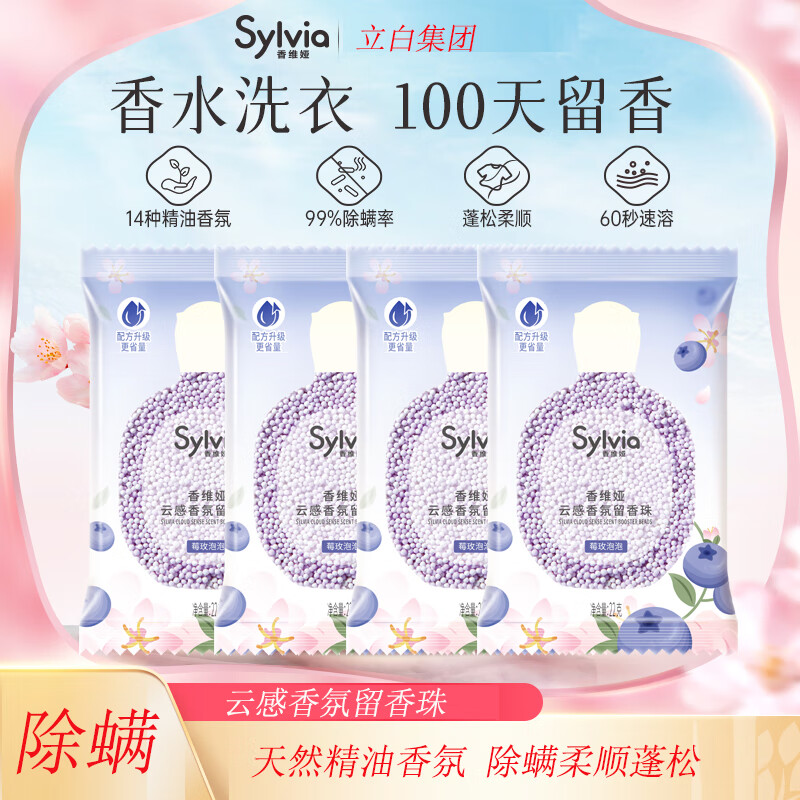 立白香维娅云感香氛留香珠精油香薰持久衣柜护衣家用天然植物精油 莓玫泡泡云感精油留香珠22g*4袋