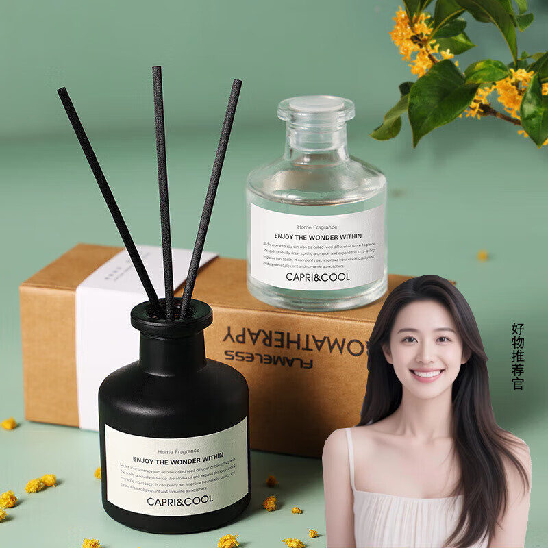 YUROUGE无火香薰家用室内持久香氛精油栀子花香卧室卫生间空气清新剂 英国梨&小苍兰50ml【黑瓶】*1瓶