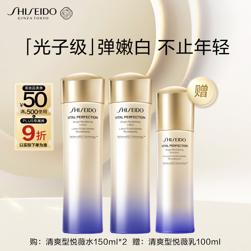 资生堂全新悦薇清爽亮肤水150ml*2+乳100ml美白淡斑紧致护肤化妆品套装