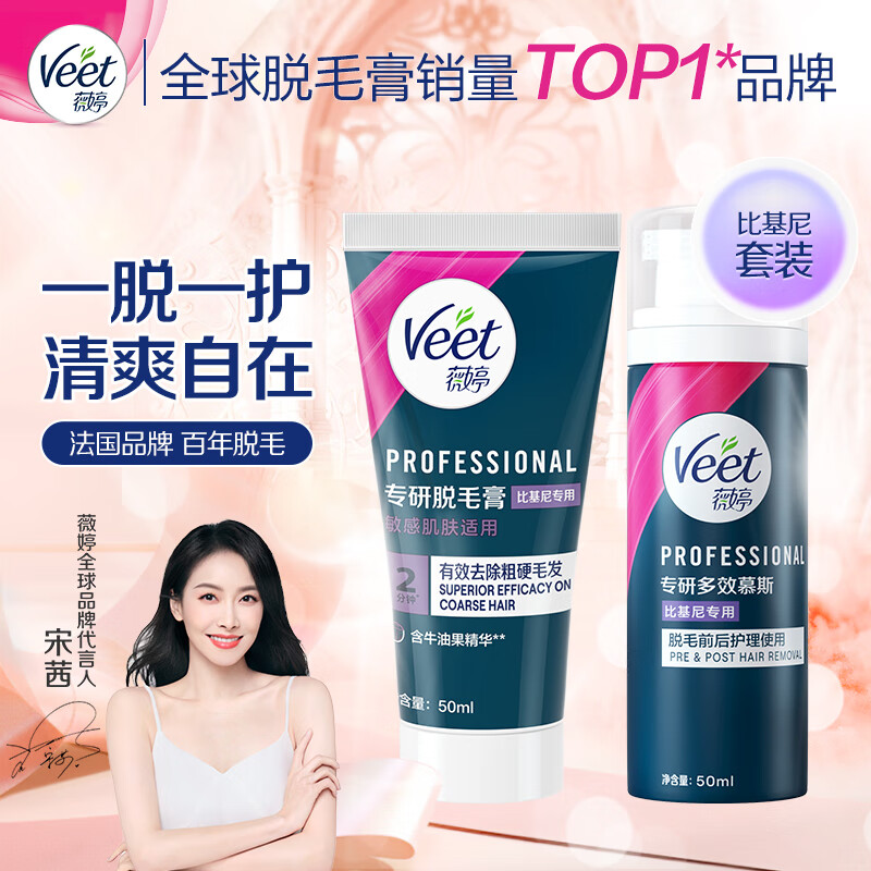 薇婷(VEET)私处专用脱毛膏50ml 男女士私处脱毛去毛除毛 非身体腋下不永久 私处脱毛膏50ml+护理慕斯50ml