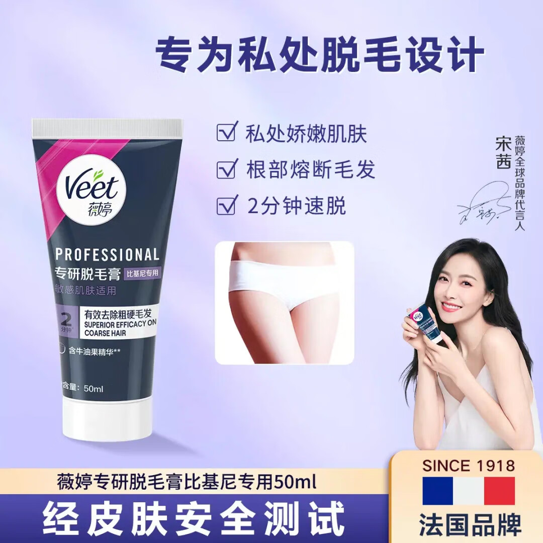 薇婷(Veet)净纯脱毛膏温和型50/100/200ML可选女士学生腋下腿毛四肢脱毛神器 【私处专研-比基尼脱毛】50ML