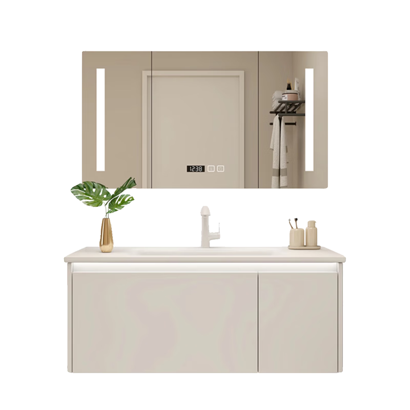 百亿补贴:勒臣奶油风杜邦可丽耐一体实木智能浴室柜卫生间洗手盆柜洗漱台洗脸盆 0.8米国产可丽耐一体盆+智能镜柜