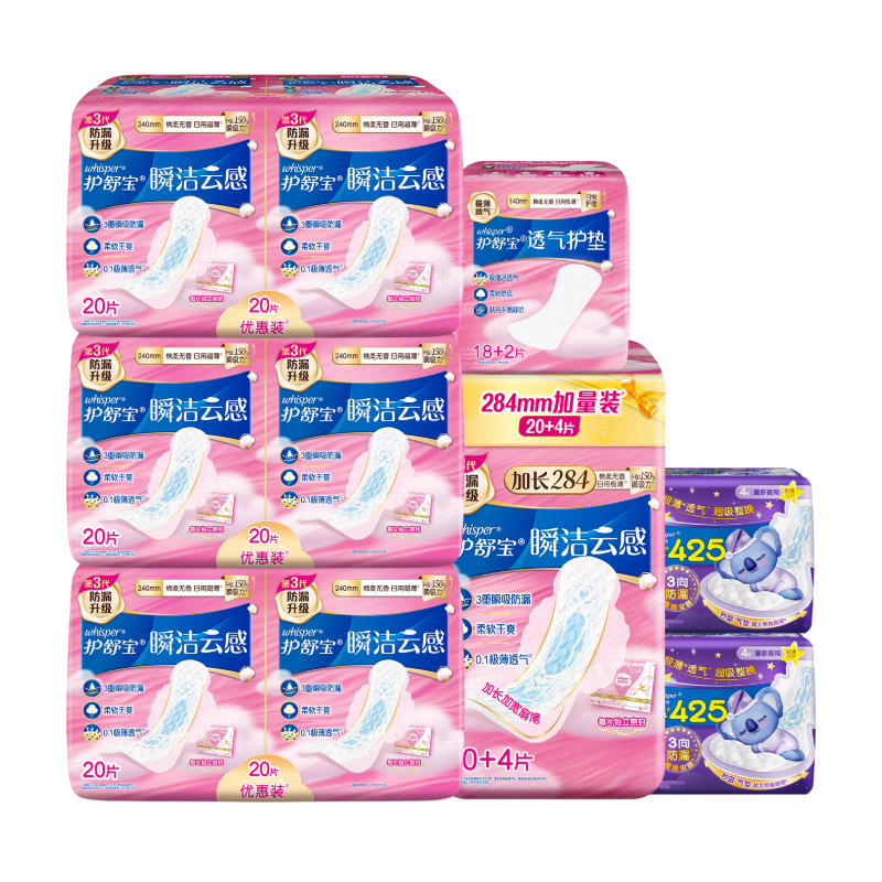 始于1983年美国,宝洁公司旗下舒适个人卫生护理用品品牌。作为女性护理消费品领域专家,护舒宝致力于优质舒适个人卫生护理用品的研发、生产、销售。护舒宝卫生巾有很多种款式系列,比如液体卫生巾系列、云感棉系列、瞬洁系列、甜睡系列、纯肌系列。