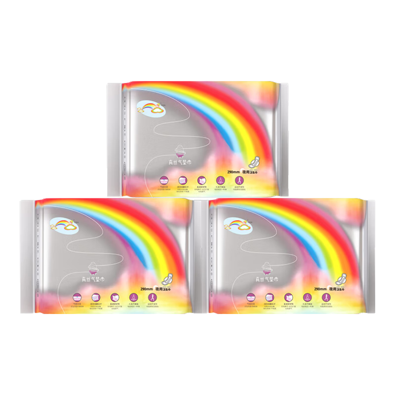 ABC夜用真丝姨妈巾卫生巾1彩虹系列瞬吸透气透气护垫柔防侧漏 棉柔 290mm 18片