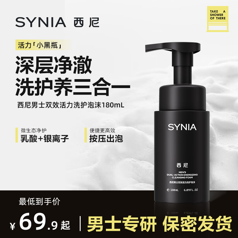西尼男士活力小黑瓶私处护理液清洗液私密处慕斯泡沫洗护去异味180ml