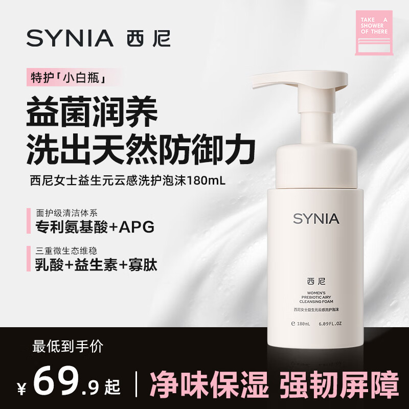 西尼(SYNIA)私处私护洗液女性私密处清洗液妇科益生元慕斯泡沫护理液180ml
