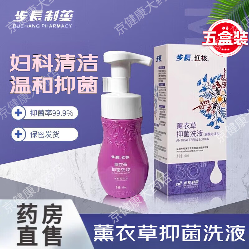 步长步长红核薰衣草抑菌洗液去味私处洗护清洁弱酸泡沫型私处洗液抑菌 长期装5瓶私密专用