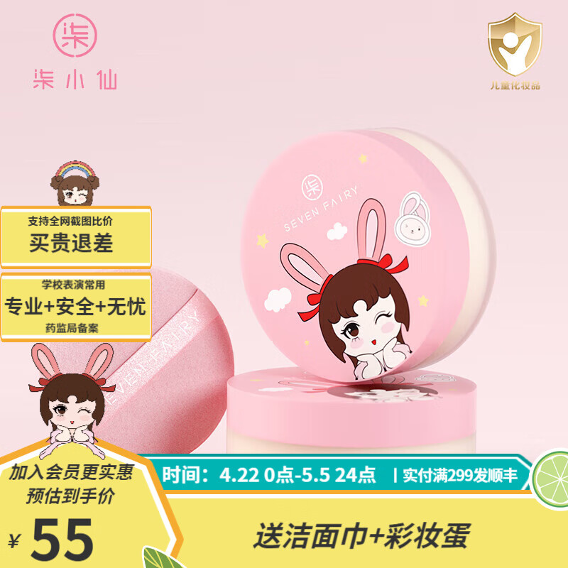 柒小仙 儿童散粉 彩妆化妆品舞台妆表演定妆粉饼持久控油防水防汗遮瑕 IP款云纱定妆散(实付满299顺丰包邮)