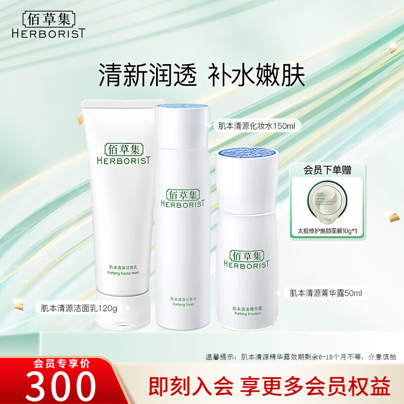 佰草集肌本清源水乳套装 补水保湿护肤品化妆品套装礼物送女友 三件套【洁面+水+露】