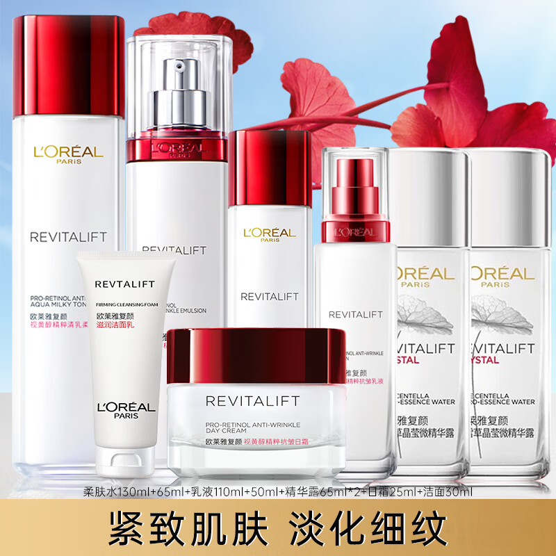 百亿补贴:欧莱雅套装抗皱紧致护肤礼盒化妆品水乳补水保湿淡纹送女友生日礼物 复颜抗皱八件套礼盒