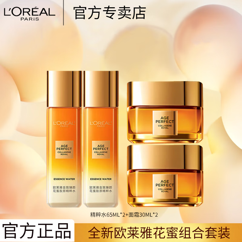 百亿补贴:欧莱雅 L'OREAL小蜜罐胶原滋润面霜紧致淡纹花蜜奢养晚霜补水保湿化妆护肤品套装 花蜜水65ML*2+胶原面霜30ML*2