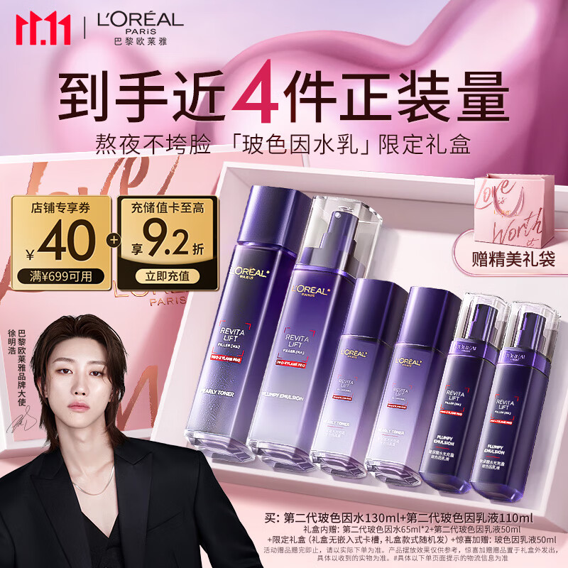 欧莱雅[徐明浩推荐]玻色因水乳礼盒套装补水化妆品护肤品生日礼物
