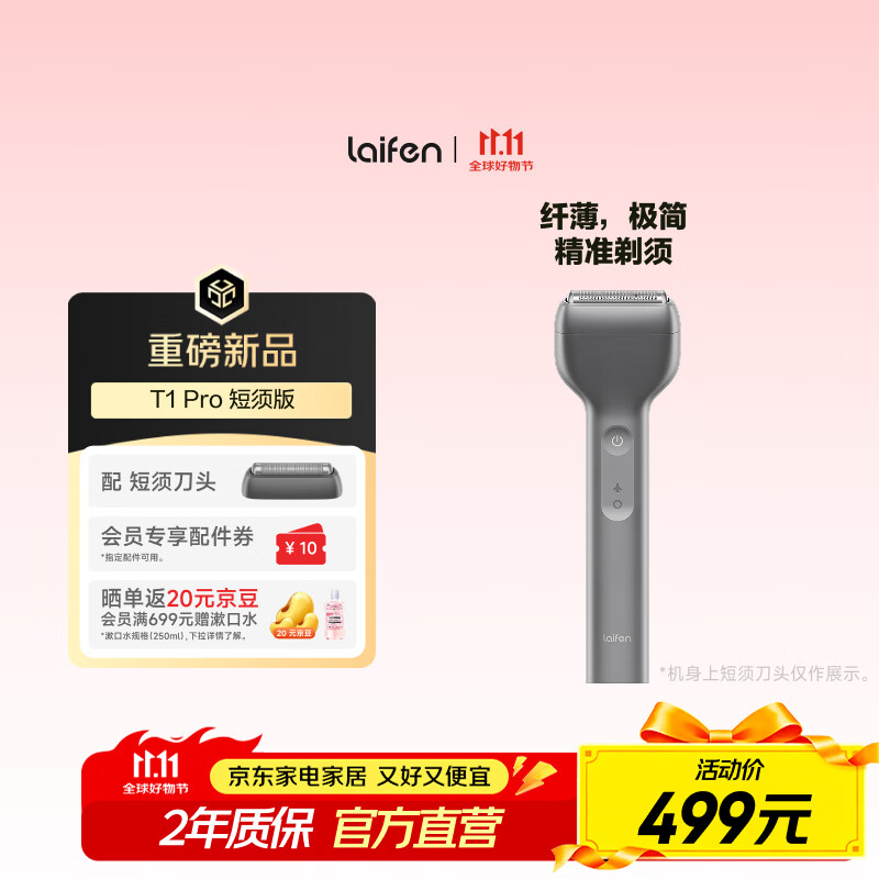 徕芬剃须刀电动刮胡刀往复式便携款单刀头 深度护理精准剃净T1 Pro 情侣送男友/女友生日礼物 深空灰