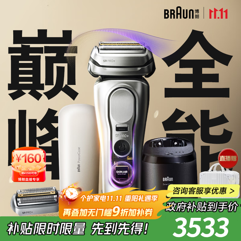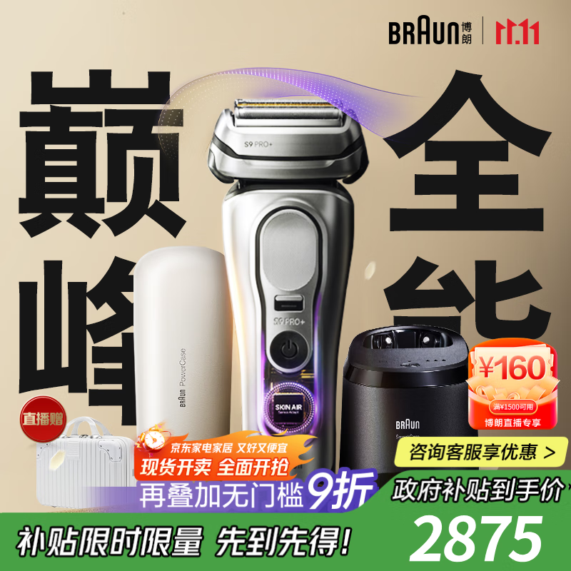 博朗9系巅峰版2.0清洁护理中心差旅无忧配双刀头电动剃须刀便携刮胡刀往复式送老公男朋友生日礼物