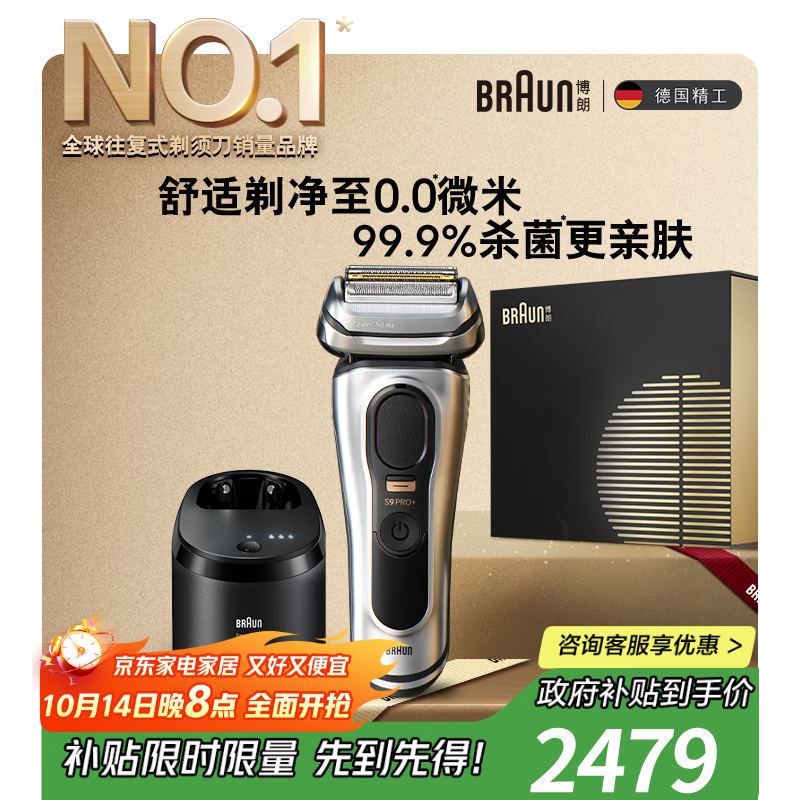 博朗 9系巅峰版 2.0清洁护理中心电动剃须刀整机德国进口往复式 礼盒款