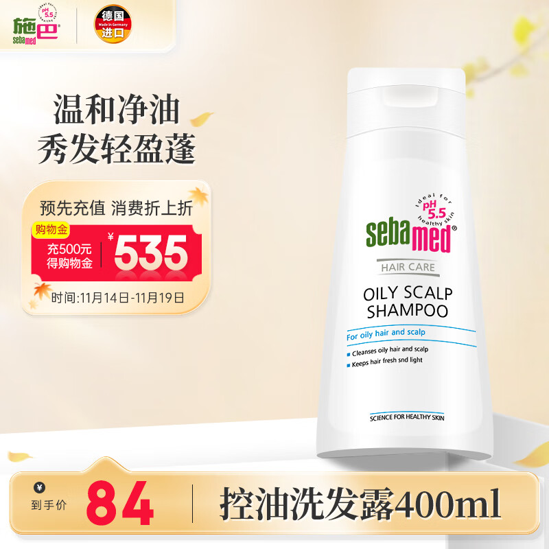 施巴(sebamed)控油洗发水无硅油洗发露男女士去油清爽蓬松400ml德国原装进口