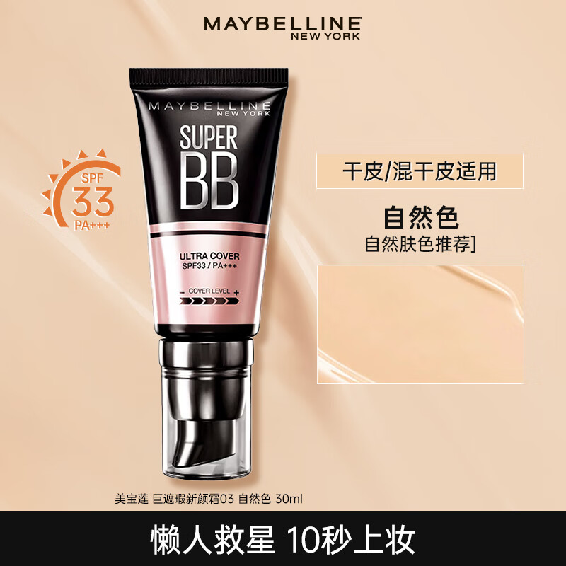 百亿补贴:美宝莲 巨遮瑕素颜霜粉底液BB霜 自然遮瑕不脱妆滋润提亮肤色七夕礼物女 美宝莲 巨遮瑕新颜霜03自然色 30ML