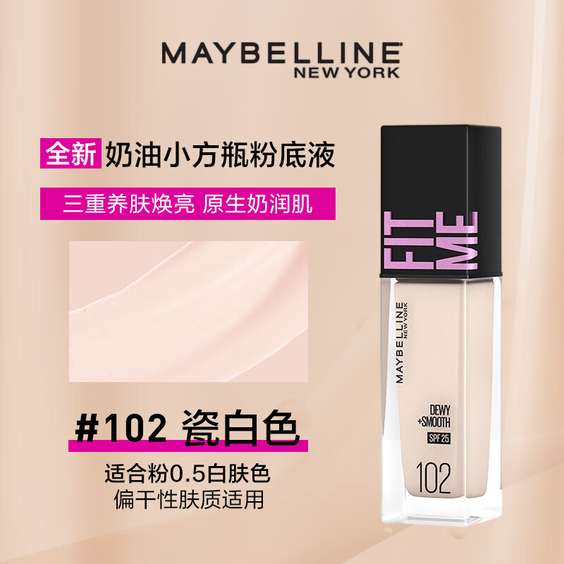百亿补贴:美宝莲fit me粉底液遮瑕膏隔离保湿混油皮女干皮哑光控油持妆送女新年礼 #102白皙红润 水润30ml