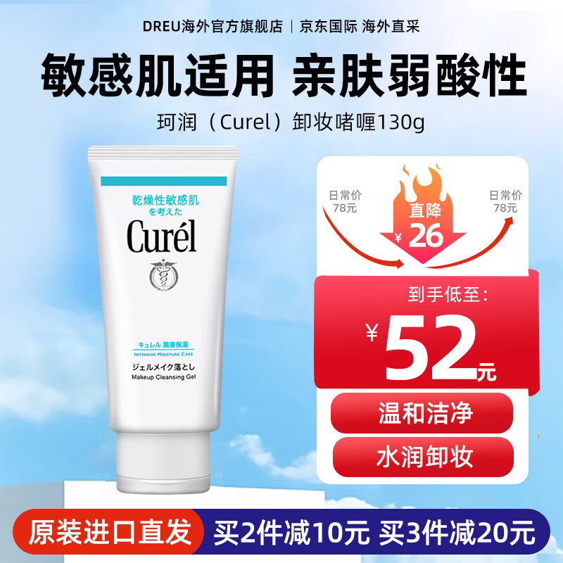 珂润(Curel)卸妆乳啫喱敏感肌卸妆油深层清洁保湿卸妆膏孕妇可用温和不刺激 卸妆啫喱130g