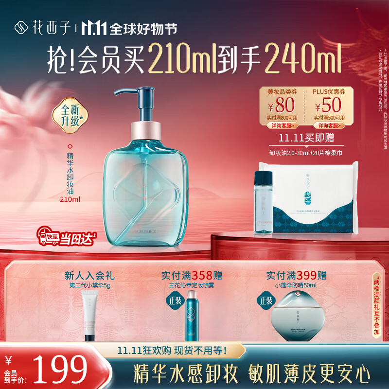 花西子【双11抢先购】精华水卸妆油210ml 温和清洁敏感肌卸妆