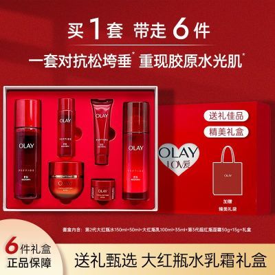 百亿补贴:OLAY 玉兰油 二代大红瓶水乳霜6件套装保湿抗皱紧致舒缓水乳面霜送礼礼盒